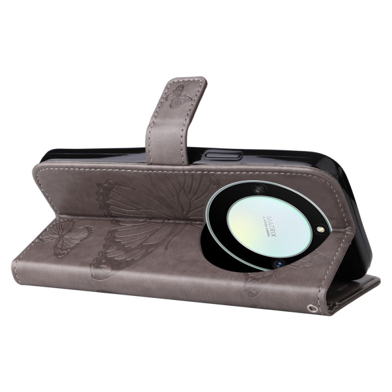 Die Hülle aus Kunstleder mit riesigen Schmetterlingen kommt mit einem praktischen Trageriemen, um das Honor Magic 5 Lite 5G / X9a zu tragen.