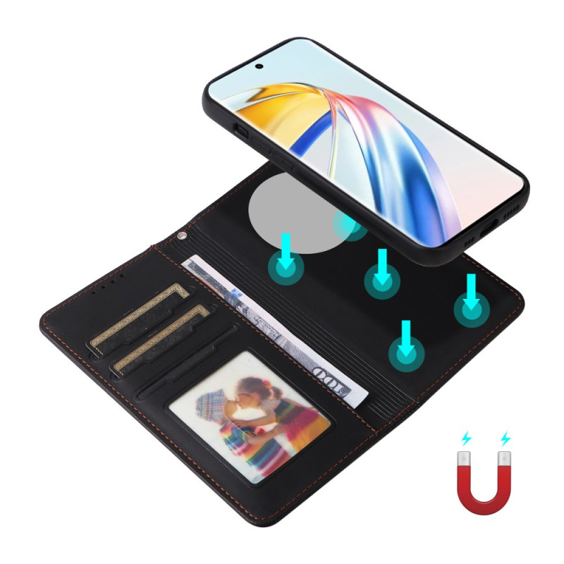 Étui portefeuille magnétique détachable en cuir PU pour Honor Magic 6 Lite / X9b. Design 2-en-1 avec fentes pour cartes, protection RFID, support intégré et dragonne pratique. Profitez d'une protection complète et d'une fonctionnalité optimale.