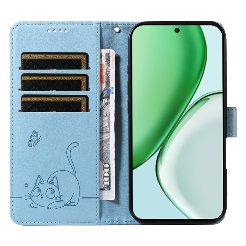 Elegante Brieftasche für Honor Magic 8 Lite mit Glückskatzenmotiv. Multifunktionales Design mit 3 Kartenfächern, Geldscheinfach und praktischer Handschlaufe. Sicherer Magnetverschluss und Rundum-Schutz.