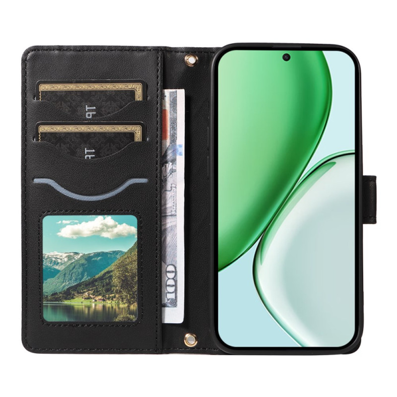 Schützen Sie Ihr Honor Magic 8 Lite elegant mit dieser Brieftasche mit raffiniertem Rautenmuster. Mit drei Kartenfächern und einem Bargeldfach vereint es Stil und Praktikabilität.
