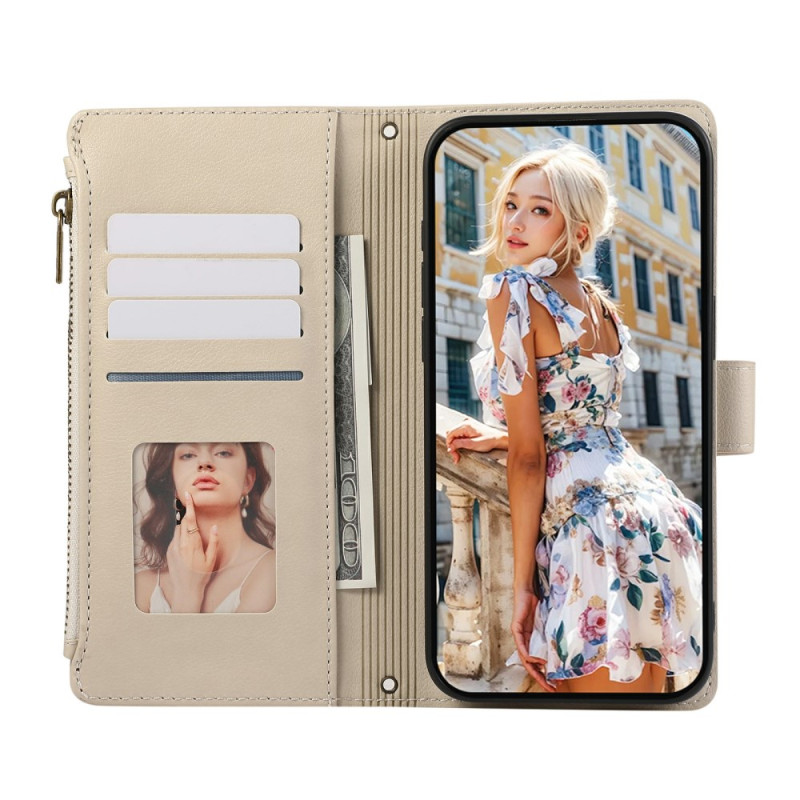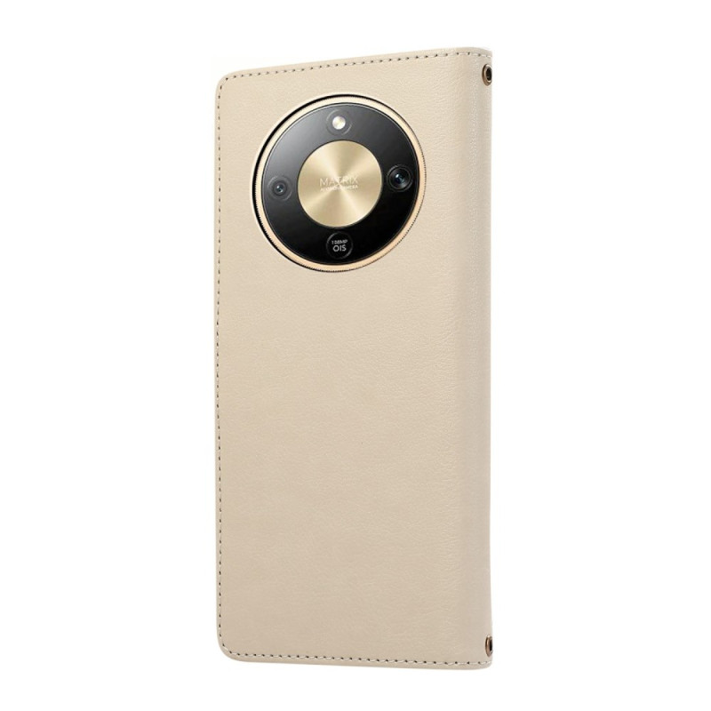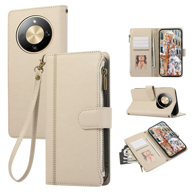 Multifunktionale Brieftasche aus PU-Leder für Honor Magic 8 Lite 5G. Ausgestattet mit mehreren Kartenfächern, einem seitlichen Reißverschlussfach und einer abnehmbaren Handschlaufe. Sicherer Magnetverschluss und integrierte Halterung für freihändiges Betrachten.