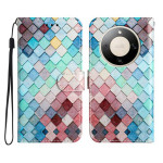 Elegante Brieftasche mit aufgedrucktem Gittermuster, die einen umfassenden Schutz für Ihr Honor Magic 8 Lite 5G bietet. Verfügt über 3 Kartenfächer, eine verstellbare Halterung mit mehreren Winkeln und einen sicheren Magnetverschluss.