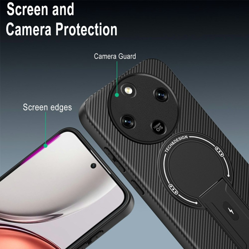 Ultra-schützende Hybridschale für Honor Magic 8 Lite 5G mit Kohlefasertextur, integrierter Halterung und verstärktem Stoßschutz. Kompatibel mit magnetischer Autohalterung und Anti-Überhitzungsdesign.