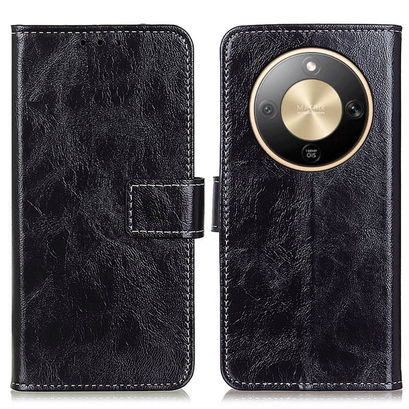 Elegante Brieftasche mit Vintage-Grain-Textur für Ihr Honor Magic 8 Lite 5G. Multifunktionales Design mit Kartenhalter, Geldscheinfach, faltbarem Ständer und sicherem Magnetverschluss.