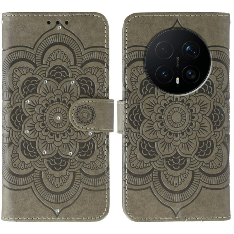 Schützen Sie Ihr Honor Magic 8 Pro 5G stilvoll mit dieser eleganten Hülle, die mit einem raffinierten Mandala-Muster und funkelnden Strasssteinen verziert ist. Praktisch und funktional, mit Kartenfächern, einer Handschlaufe und einer Freisprecheinrichtung für den optimalen täglichen Gebrauch.