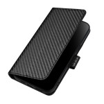 Étui portefeuille élégant en cuir PU texturé fibre de carbone avec coque TPU intérieure. Doté de 3 fentes pour cartes, 1 poche pour espèces, d'un support ajustable pliable et d'une dragonne pratique pour un transport sécurisé.