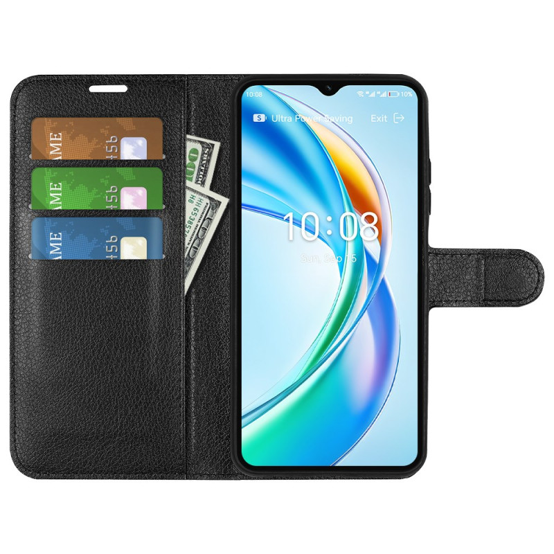 Protégez élégamment votre Honor X5b avec cet étui portefeuille en cuir PU texture litchi. Design 2-en-1 pratique avec compartiments pour cartes, support de visionnage ajustable et fermeture magnétique sécurisée pour une protection intégrale.