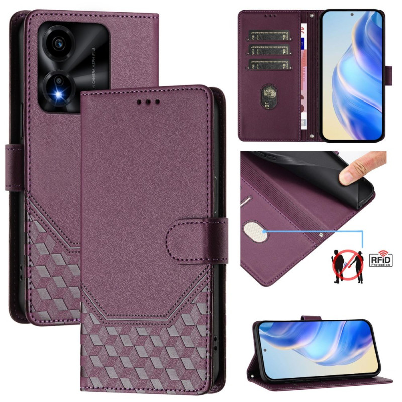 Entdecken Sie unsere hochwertige Lederhülle für Honor X5c Plus. Mit einem aufgedruckten Wabenmuster versehen, bietet diese Schutzhülle eine angenehme Haptik und eine außergewöhnliche Haltbarkeit. Mit der Brieftaschenfunktion, der integrierten Halterung und der RFID-Sperrtechnologie vereint sie Praktikabilität und Sicherheit für Ihr Handy.