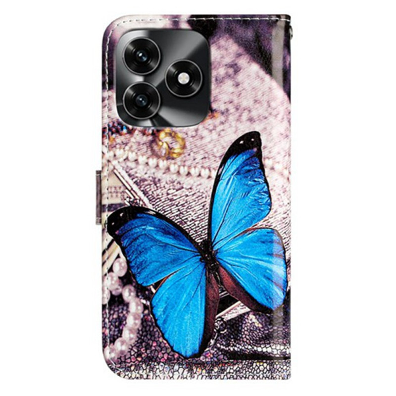 Elegantes Wallet-Etui mit einem wunderschönen blauen Schmetterlingsmuster. Enthält 3 Kartenfächer, einen Multi-Winkelhalter und eine abnehmbare Handschlaufe. Vollständiger Schutz vor Stößen und Kratzern.