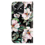 Elegante Brieftasche mit Magnolienmotiv für Honor X5c Plus. Raffiniertes, feminines Design, verstellbare Mehrwinkelhalterung, sicherer Magnetverschluss. Enthält 3 Kartenfächer, eine Seitentasche und eine abnehmbare Handschlaufe.