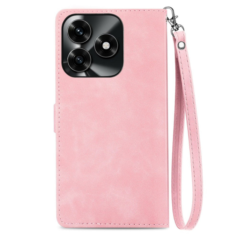 Elegante Brieftasche aus PU-Leder mit Blumenmuster für Honor X5c Plus 4G. Ausgestattet mit mehreren Kartenfächern, einem externen Reißverschlussfach, einem sicheren Magnetverschluss und einer praktischen Handschlaufe.