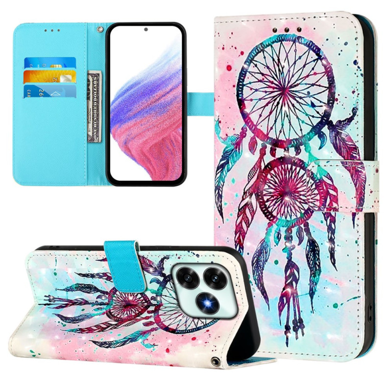 Schützen Sie Ihr Honor X5c Plus 4G stilvoll mit dieser Brieftasche mit dem bezaubernden Motiv eines bunten Windspiels. Mit drei Kartenfächern und einem Geldscheinfach vereint es Stil und Praktikabilität.