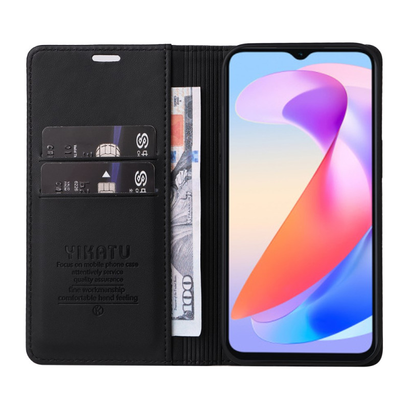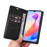 Schützen Sie Ihr Honor X6a 4G stilvoll mit dieser Brieftasche aus Premium-PU-Leder. Ultradünn und stoßfest, vereint es Eleganz mit robustem Schutz. Ausgestattet mit 2 Kartenschlitzen, einem Geldscheinfach und einer Ständerfunktion.