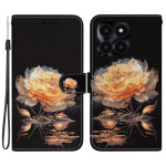 Élégant étui portefeuille en simili cuir pour Honor X6a 4G avec un superbe motif de pivoine dorée. Doté de fentes pour cartes, d'un support intégré et d'une dragonne pratique. Protection complète et style raffiné pour votre smartphone au quotidien.