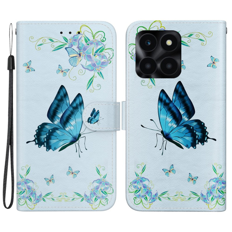 Housse Honor X6a 4G Papillons Bleus et Fleurs