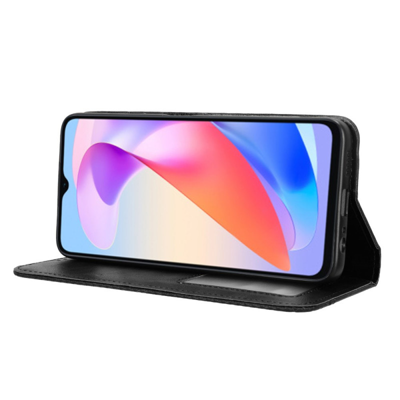 Protégez votre Honor X6a 4G avec élégance grâce à cet étui portefeuille rétro. Doté d'une bordure mosaïque gravée, de multiples fentes pour cartes, d'un support ajustable et d'une fermeture magnétique automatique pour une protection complète.