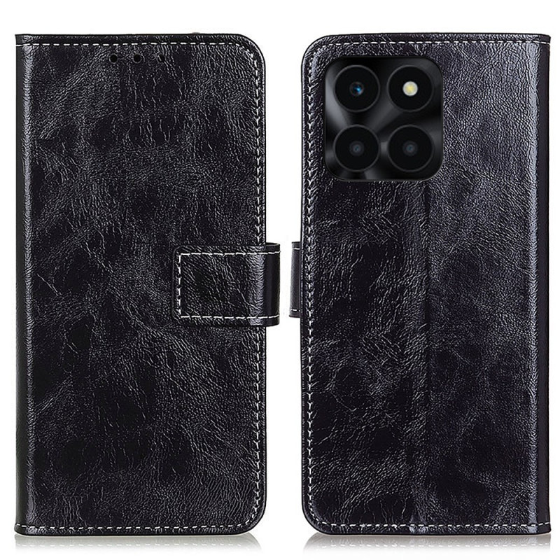 Étui portefeuille élégant en cuir PU texture cheval fou vintage pour Honor X6a 4G. Design multifonctionnel avec porte-cartes, compartiment billets, support pliable et fermeture magnétique. Protection complète contre rayures et chutes.
