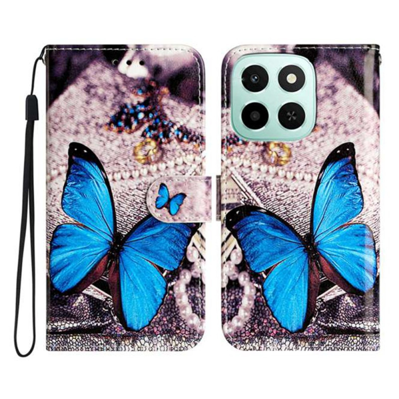 Elegante Brieftasche mit blauem Schmetterlingsmotiv für Honor X6c 4G / X5b / X5b Plus. Anspruchsvolles Design, das Stil und Funktionalität vereint. Inklusive 3 Kartenfächern, verstellbarer Halterung, sicherem Magnetverschluss und abnehmbarer Handschlaufe...