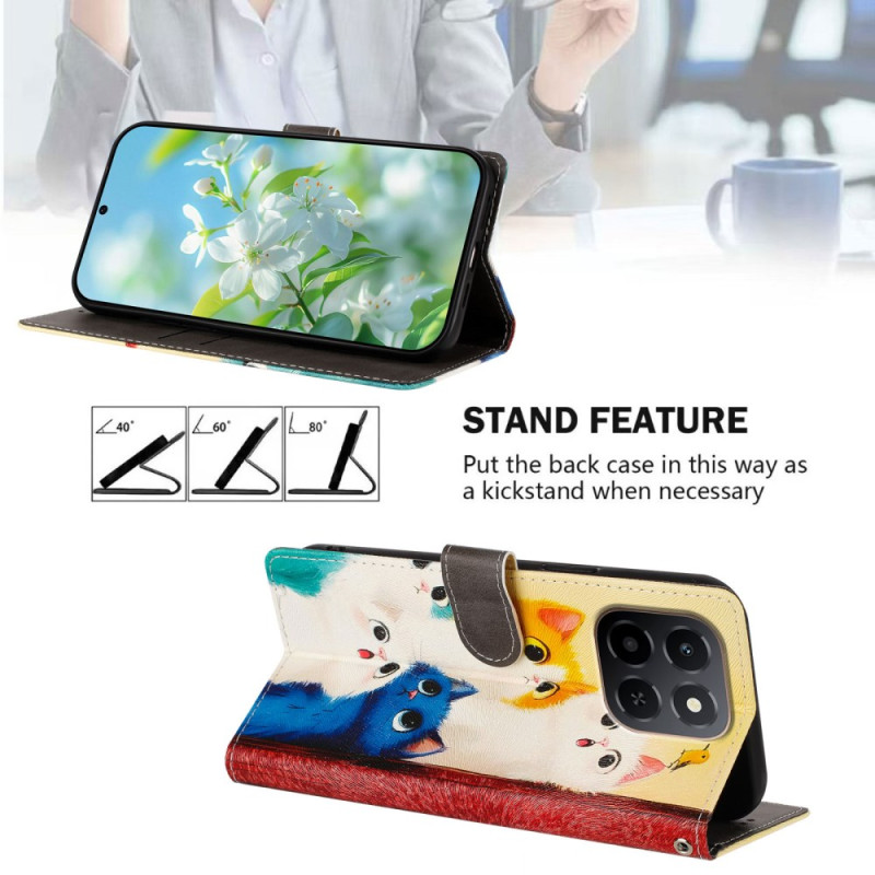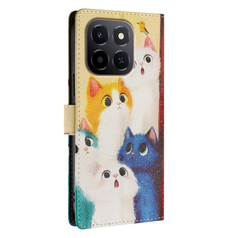 Schützen Sie Ihr Honor X6c 4G / X5b / X5b Plus stilvoll mit dieser Brieftasche mit buntem Katzenmotiv. Mit 2 Kartenfächern, 1 Geldscheinfach und einer abnehmbaren Handschlaufe vereint es Eleganz und Praktikabilität.