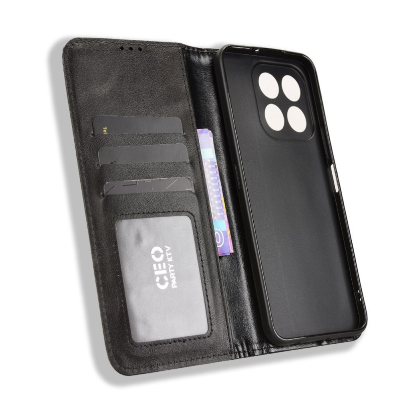 Entdecken Sie unsere elegante Brieftasche für das Honor X6c 4G, die Vintage-Stil und Funktionalität vereint. Mit mehreren Kartenfächern, einer verstellbaren Halterung und einem automatischen Magnetverschluss bietet sie umfassenden Schutz.