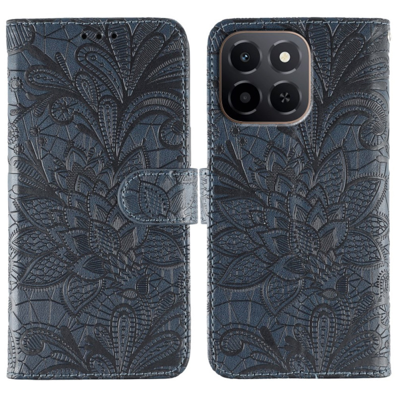 Schützen Sie Ihr Honor X6c 4G elegant mit dieser aufklappbaren Brieftasche, die mit einem wunderschönen Blumenmuster aus Spitze verziert ist. Mit mehreren Kartenfächern, einem Seitenfach und einer Ständerfunktion vereint dieses Etui raffinierten Stil mit praktischer Alltagstauglichkeit.