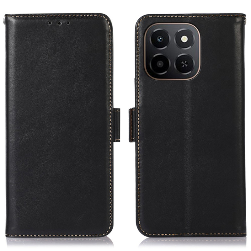 Elegante Brieftasche aus echtem Leder für Honor X6c 4G mit RFID-Sperrtechnologie. Umfassender Schutz vor Stößen und Kratzern dank flexiblem TPU. 3 Kartenfächer und 1 Bargeldfach integriert.