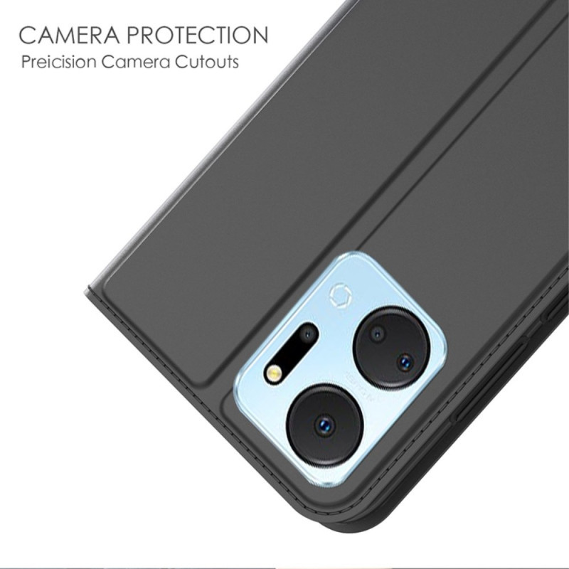 Elegante Brieftaschenhülle für Honor X7a 4G mit seidiger Textur. Ausgestattet mit einem praktischen Kartenhalter, einem integrierten, verstellbaren Ständer und einem sicheren Magnetverschluss. Umfassender Schutz vor Kratzern und Stößen im Alltag.
