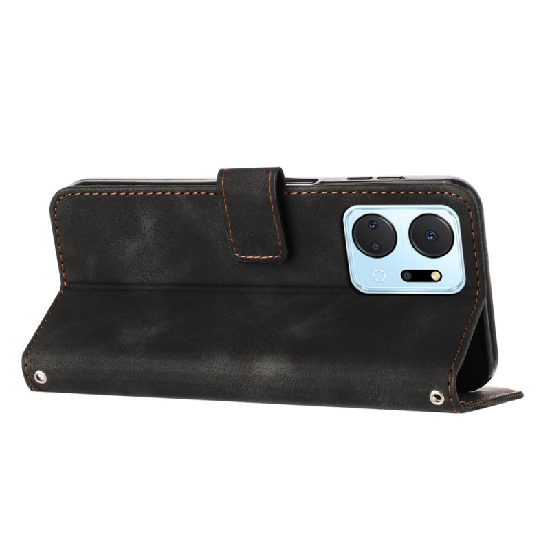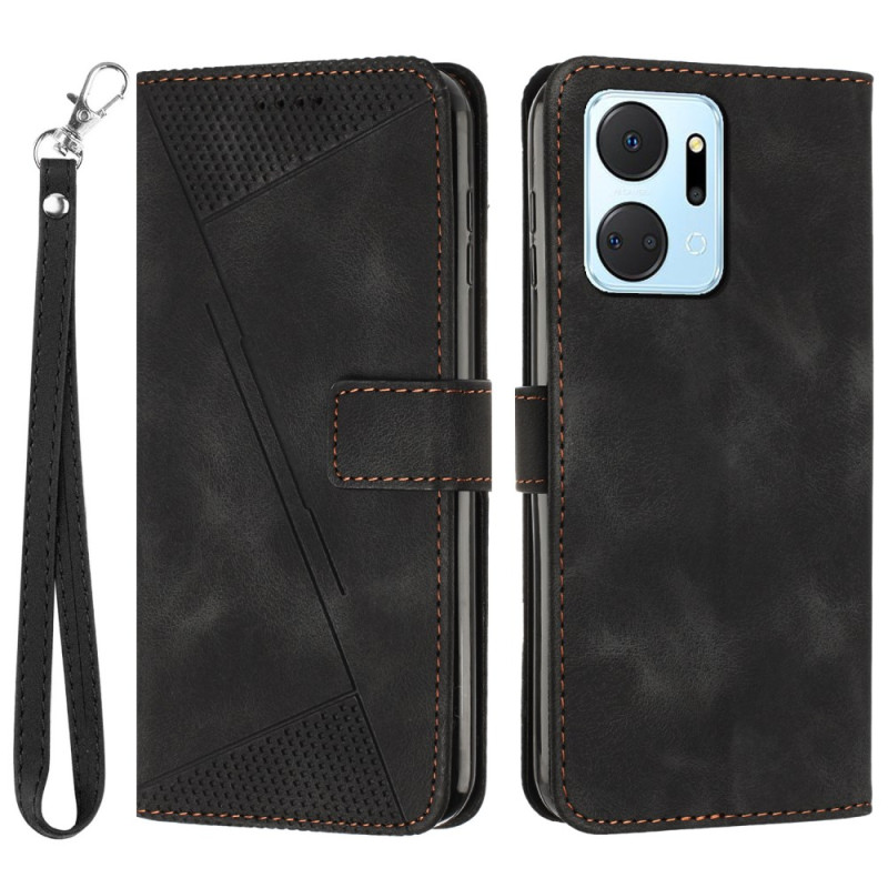 Elegante Wallet-Hülle aus PU-Leder und TPU für Honor X7a 4G. Modernes Design mit Dreiecksmotiven, integrierter Standfunktion, 3 Kartenfächern und sicherem Magnetverschluss. Umfassender Schutz vor Stößen im Alltag.