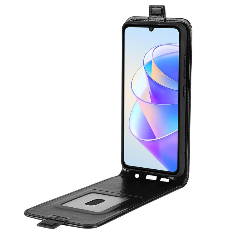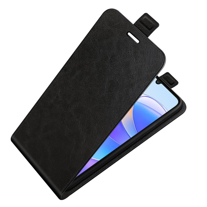 Elegante Tasche mit vertikaler Klappe für Honor X7a 4G. Praktisches Design mit nach unten gerichteter Öffnung für die Einhandbedienung, integriertem Kartenhalter und sicherem Magnetverschluss. Texturiertes Premium-Finish bietet einen angenehmen Griff.