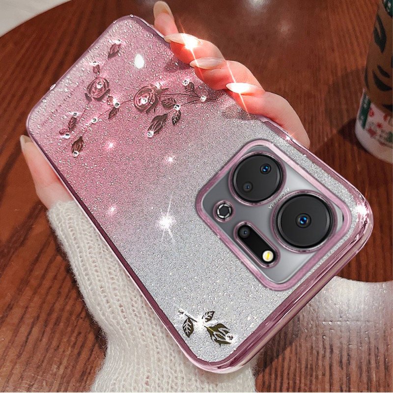 Protégez votre Honor X7a 4G avec élégance grâce à cette magnifique coque ornée de strass et de fleurs éternelles. Son design dégradé pailleté apporte une touche glamour et tendance à votre téléphone tout en assurant une protection optimale.