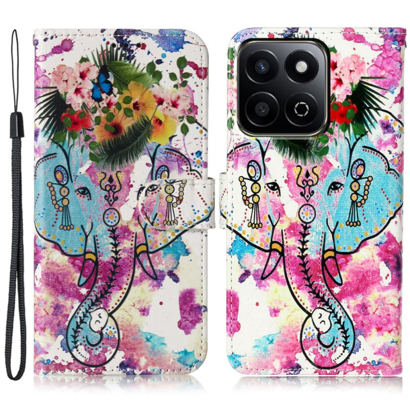 Schützen Sie Ihr Honor X7c 5G / 4G / 200 Smart 5G stilvoll mit dieser eleganten Brieftasche mit blumigem Elefantenmuster. Mit mehreren Kartenfächern, einem verstellbaren Ständer und einer praktischen Handschlaufe vereint sie Funktionalität und Ästhetik perfekt und bietet Rundumschutz um 360 Grad.