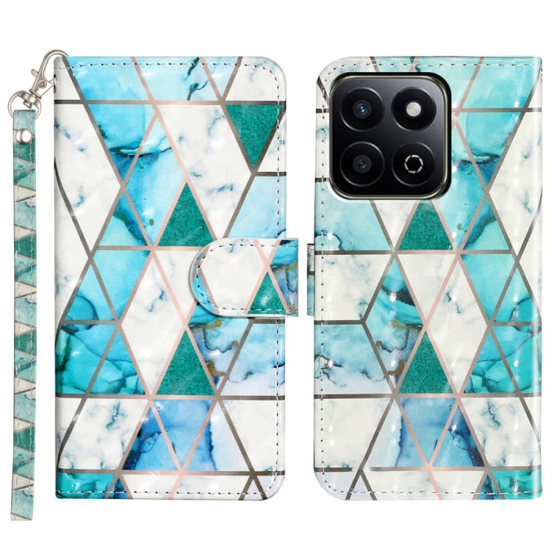 Schützen Sie Ihr Honor X7c 5G / 4G / 200 Smart 5G elegant mit dieser Klapphülle mit grünem 3D-Marmor-Muster. Sie kombiniert Premium-Schutz mit Brieftaschenfunktionalität und bietet einen verstellbaren Standfuß, Kartenfächer und einen sicheren Magnetverschluss.