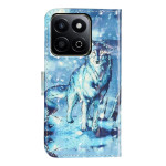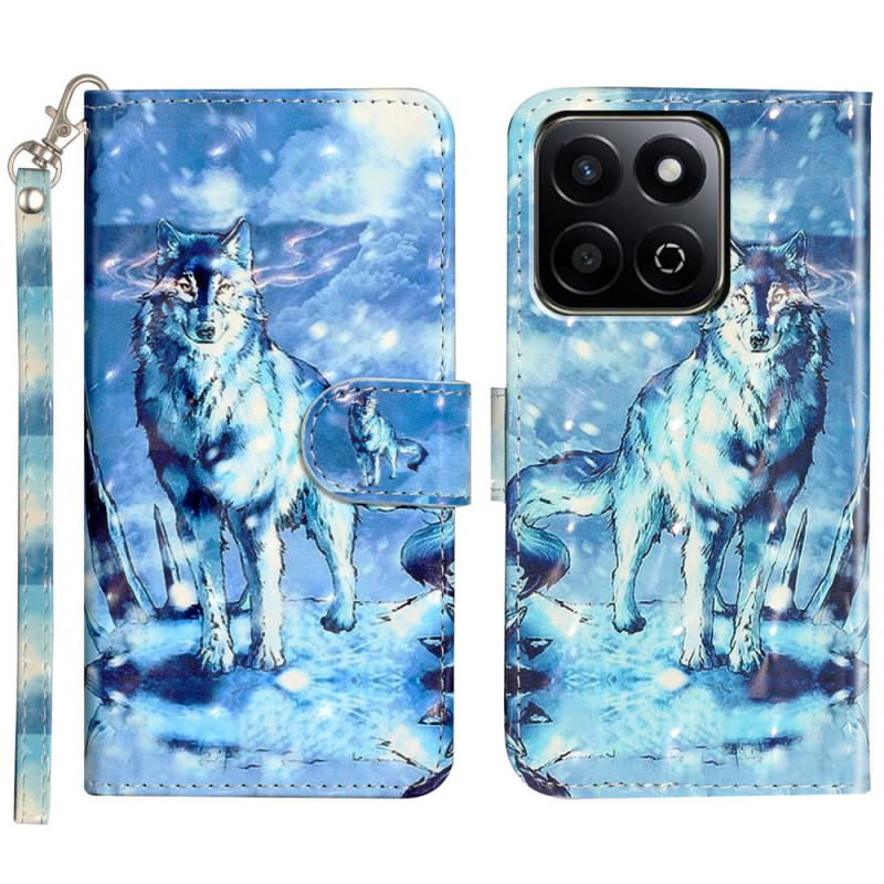 Elegante Brieftasche mit 3D-Druck Schneewolf-Motiv. Funktionales Design mit Kartenhalter, verstellbarem Videohalter und sicherem Magnetverschluss. Rundumschutz aus Premium-PU-Leder für Ihr Honor-Smartphone.