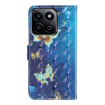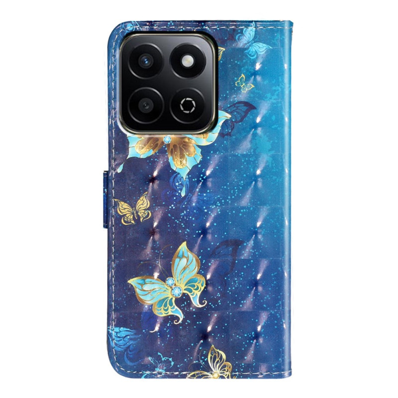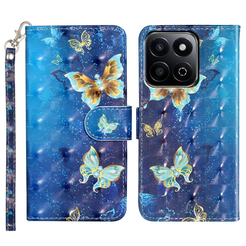 Schützen Sie Ihr Honor X7c 5G / 4G / 200 Smart 5G stilvoll mit dieser Brieftasche mit 3D-Schmetterlingsmuster in Blau-Gold. Mit Kartenschlitzen, einem verstellbaren Halter und einem sicheren Magnetverschluss vereint es Stil und Funktionalität. Wird mit abnehmbarer Handschlaufe geliefert.