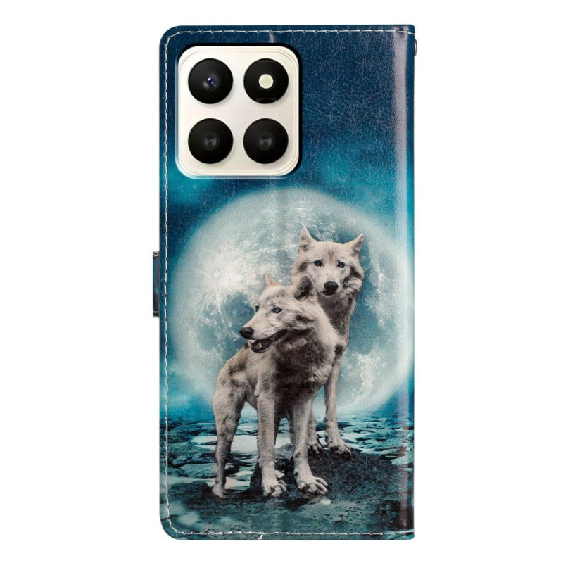 Entdecken Sie diese elegante Brieftasche für das Honor X7d 5G mit einem wunderschönen Motiv mit zwei Wölfen. Mit drei Kartenfächern und einem Fach für Bargeld vereint es Stil und Zweckmäßigkeit. Die Standfunktion ermöglicht freihändiges Betrachten.