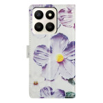 Entdecken Sie diese elegante Brieftasche für Honor X7d 5G mit einem wunderschönen violetten Blumenmuster. Mit Kartenschlitzen, einem integrierten Ständer und einer abnehmbaren Handschlaufe vereint es Stil und Alltagstauglichkeit.