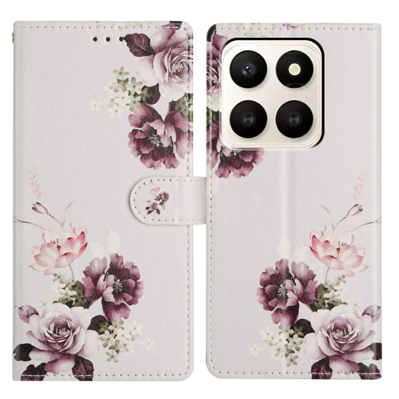 Elegante Brieftasche für Honor X7d 5G mit aufgedrucktem rosa Kreuzmotiv. Inklusive 2 Kartenfächern, integrierter Freisprecheinrichtung, sicherem Magnetverschluss und abnehmbarer Handschlaufe. Umfassender Schutz vor Stößen und Kratzern.