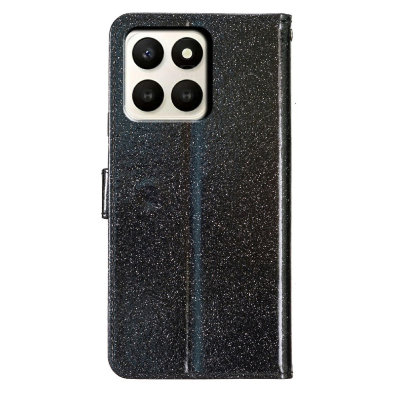 Schützen Sie Ihr Honor X7d 5G elegant mit dieser multifunktionalen Brieftasche. Das Glitzerdesign sorgt für einen glamourösen Touch, während das praktische Design Kartenfächer, einen verstellbaren Ständer und eine sichere Handschlaufe bietet.