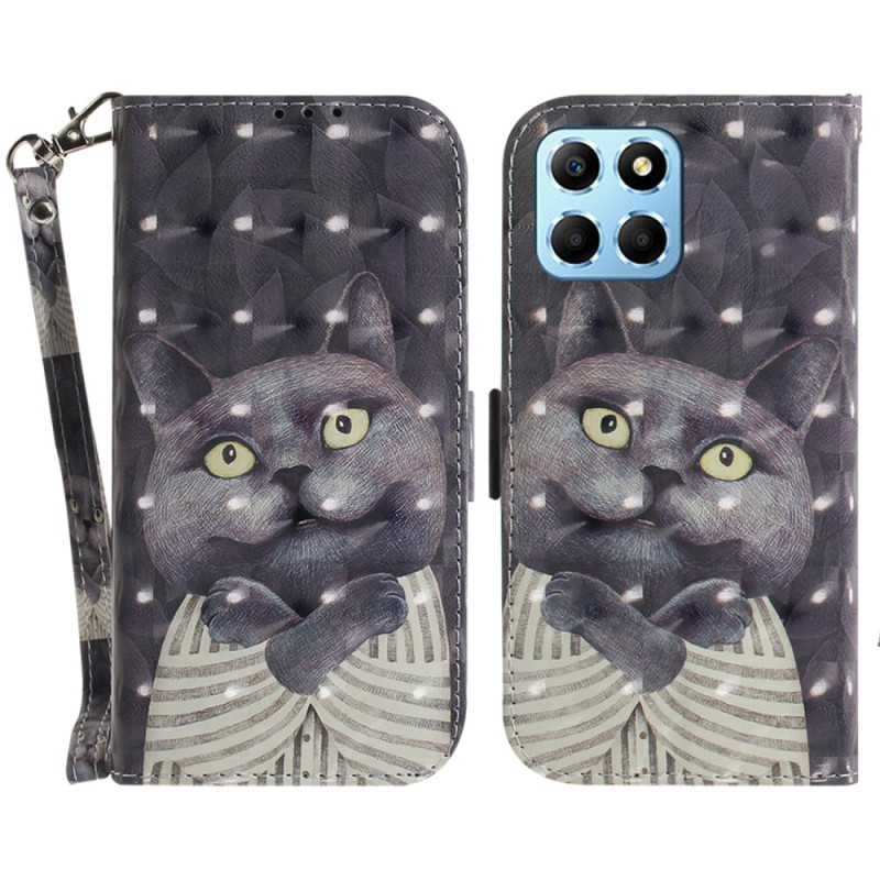 Tasche Honor X8 5G Katze Grau mit Riemen