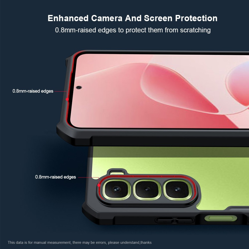• Erhöhte Ränder von 0,8 mm zum Schutz des Bildschirms und des Kameraobjektivs vor Kratzern und Stößen