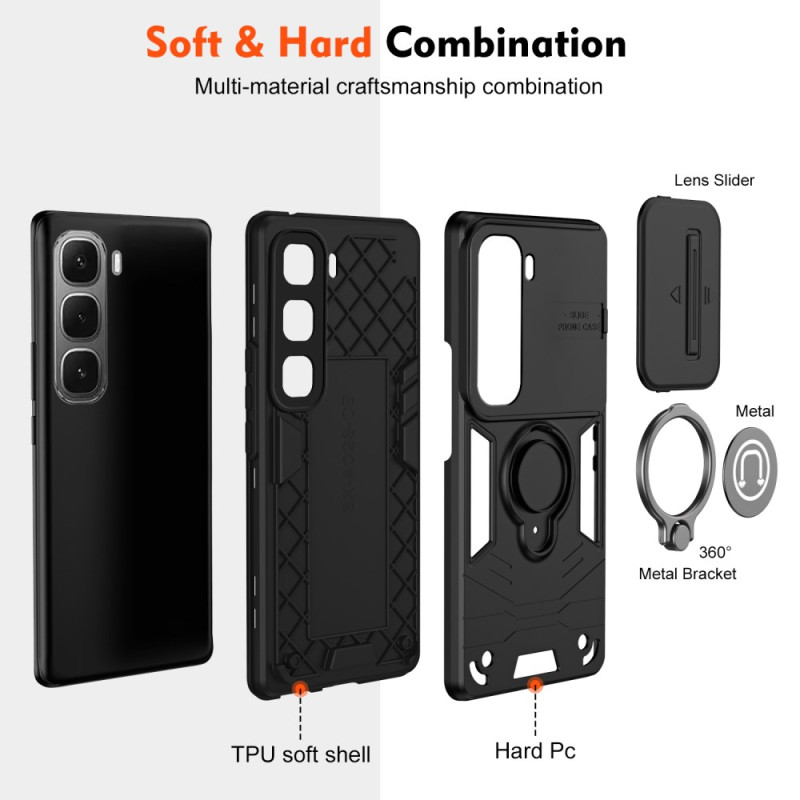 Umfassender Schutz für Ihr Infinix Hot 60i 4G, der Stil und Funktionalität vereint. Ausgestattet mit einem innovativen, verschiebbaren Kameraschutz, einer integrierten Halterung und einem Metallring für einen sicheren Griff. Kompatibel mit magnetischen Halterungen.