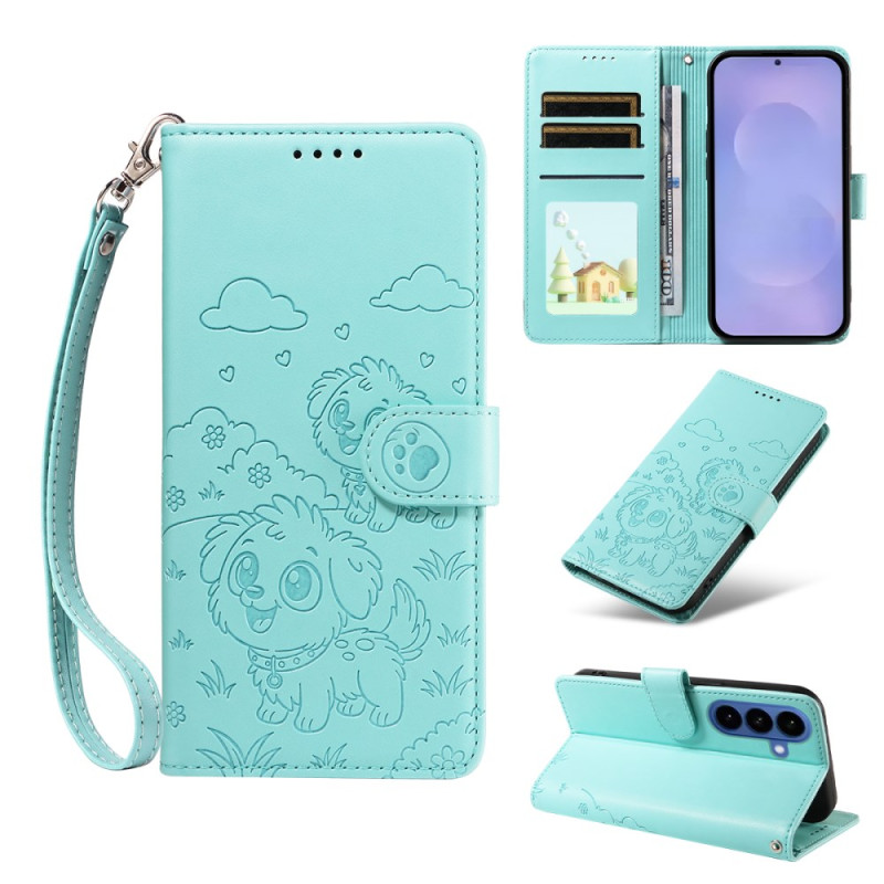 Schützen Sie Ihr Samsung Galaxy S26 Plus 5G stilvoll mit dieser multifunktionalen Tasche. Sie ist mit einem eleganten Hundemotiv versehen und verfügt über RFID-Blockierungstechnologie, um Ihre Daten zu sichern. Mit drei Kartenfächern, einem Geldscheinfach und einer abnehmbaren Handschlaufe lässt sich die Tasche leicht transportieren.