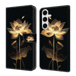 Elegante Brieftasche für das Samsung Galaxy S26 Plus mit raffiniertem goldenem Lotusmuster. Klappendesign mit integriertem Klappständer, 2 Kartenfächern und Geldscheinfach. Sicherer Magnetverschluss für optimalen Schutz.