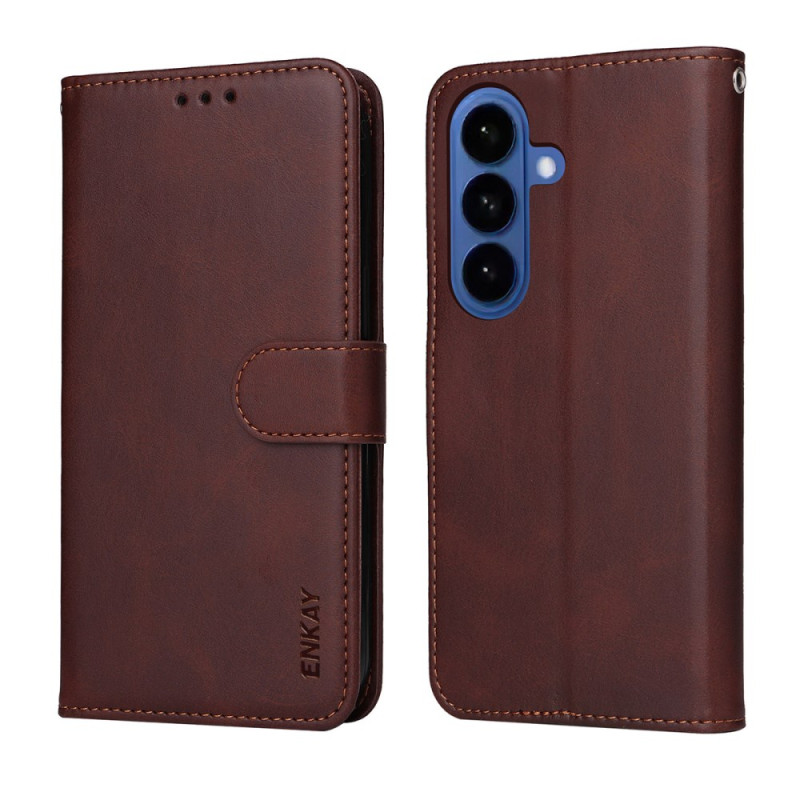 Étui portefeuille élégant en cuir PU texturé pour Samsung Galaxy S26. Comprend 3 emplacements pour cartes, un support pliable intégré, une dragonne amovible et un protecteur d'écran en verre trempé 0,18mm compatible déverrouillage...