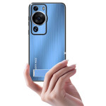 Die Hülle aus gebürstetem Aluminium mit Freisprecheinrichtung verleiht dem Huawei P60 Pro einen einzigartigen und praktischen Schutz.