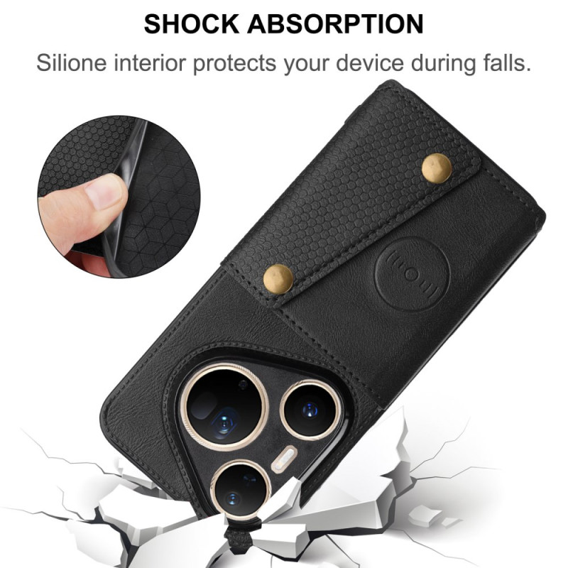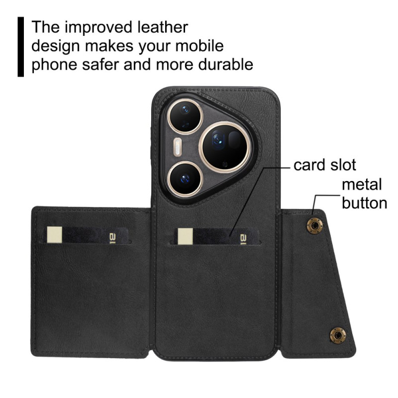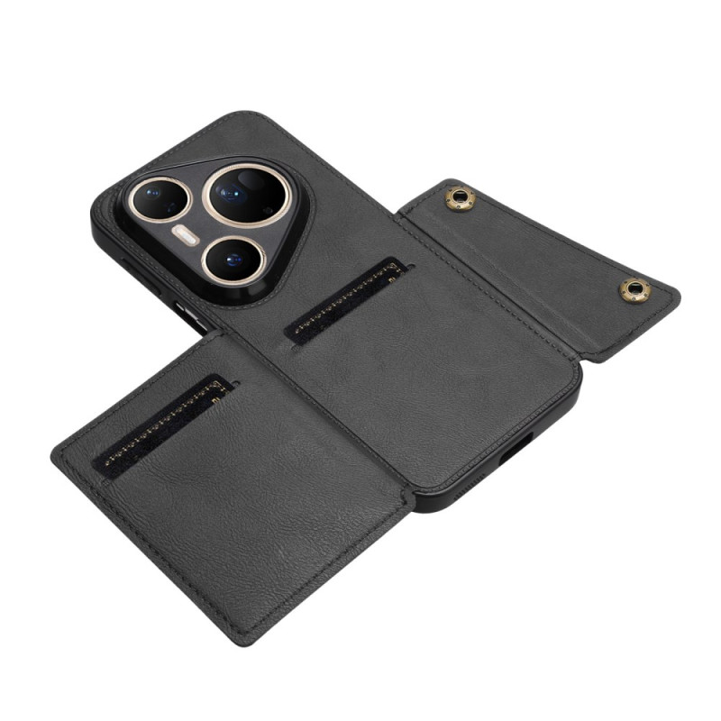 Multifunktionale Tasche für Huawei Pura 80 Ultra, die Premium-Schutz mit praktischer Handhabung kombiniert. Mit integrierten Kartenfächern, einem verstellbaren Halter für freihändiges Betrachten und einem sicheren Zwei-Druckknopf-Verschluss.