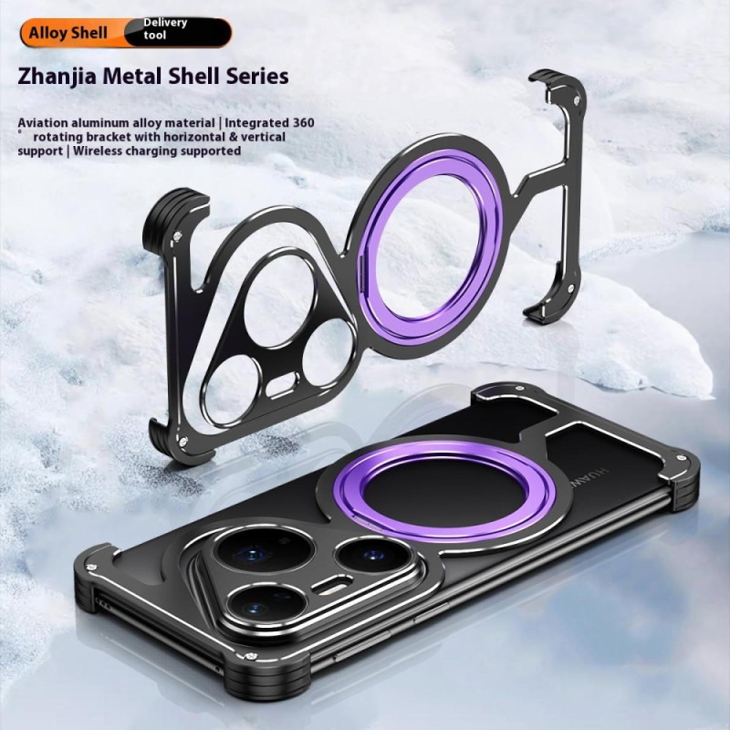 Schützen Sie Ihr Huawei Pura 80 Pro mit dieser Hülle aus einer Flugzeugaluminiumlegierung. 360° drehbare Halterung, belüftetes Design gegen Überhitzung, verstärkter Schutz an den Ecken und MagSafe-Ladekompatibilität. Umfassender Schutz für Fotoobjektive inklusive.