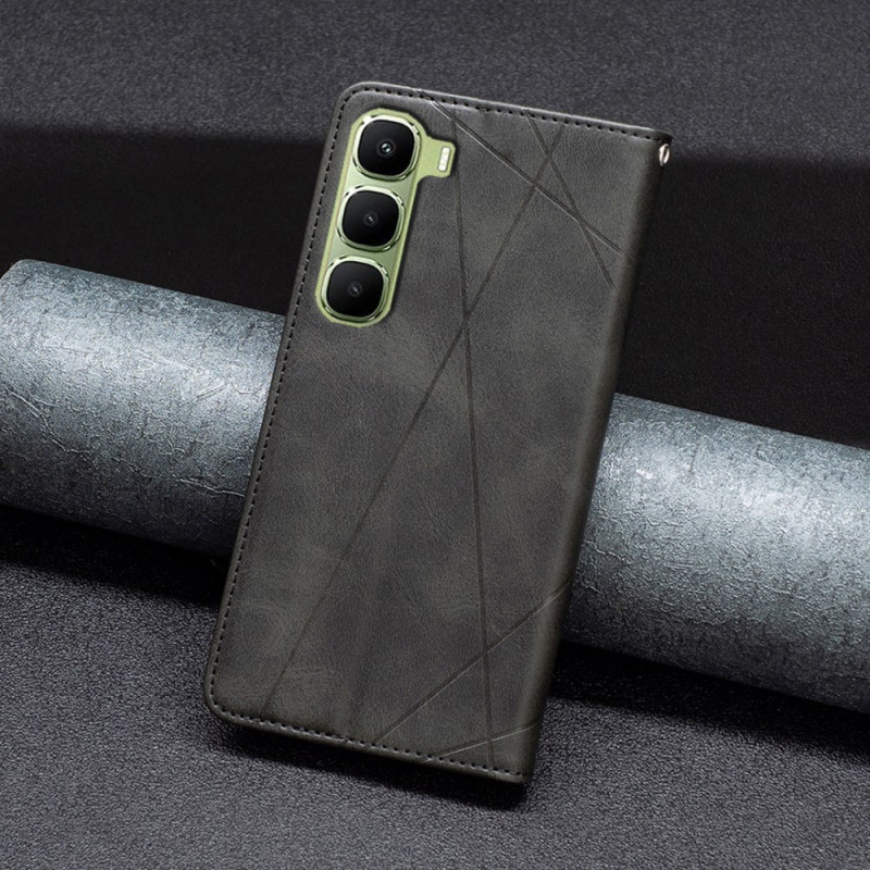 Entdecken Sie diese elegante Ledertasche für Infinix Hot 60 Pro 4G mit einem raffinierten geometrischen Design. Mit integrierten Kartenfächern, einem sicheren Magnetverschluss und einem praktischen Viewport bietet sie einen umfassenden Schutz...