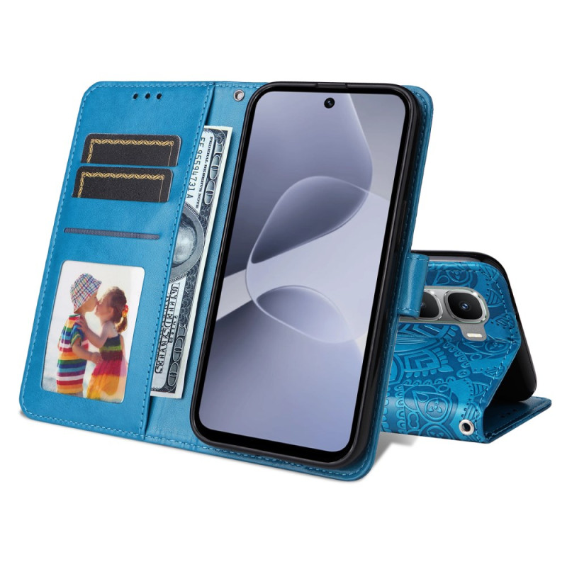 Schützen Sie Ihr Infinix Hot 60 Pro 4G elegant mit dieser raffinierten Brieftasche. Das Design mit geprägtem Sonnenblumenmotiv vereint Stil und Zweckmäßigkeit mit Kartenfächern, einer Ständerfunktion und einem sicheren Magnetverschluss.