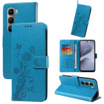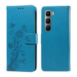 Elegante Brieftasche für Infinix Hot 60 Pro 4G mit eingraviertem Schmetterlings- und Blumenmuster. Ausgestattet mit mehreren Kartenfächern, einer integrierten Halterung für freihändiges Sehen und einer praktischen Trageschlaufe. Umfassender Schutz vor Stößen und Kratzern.